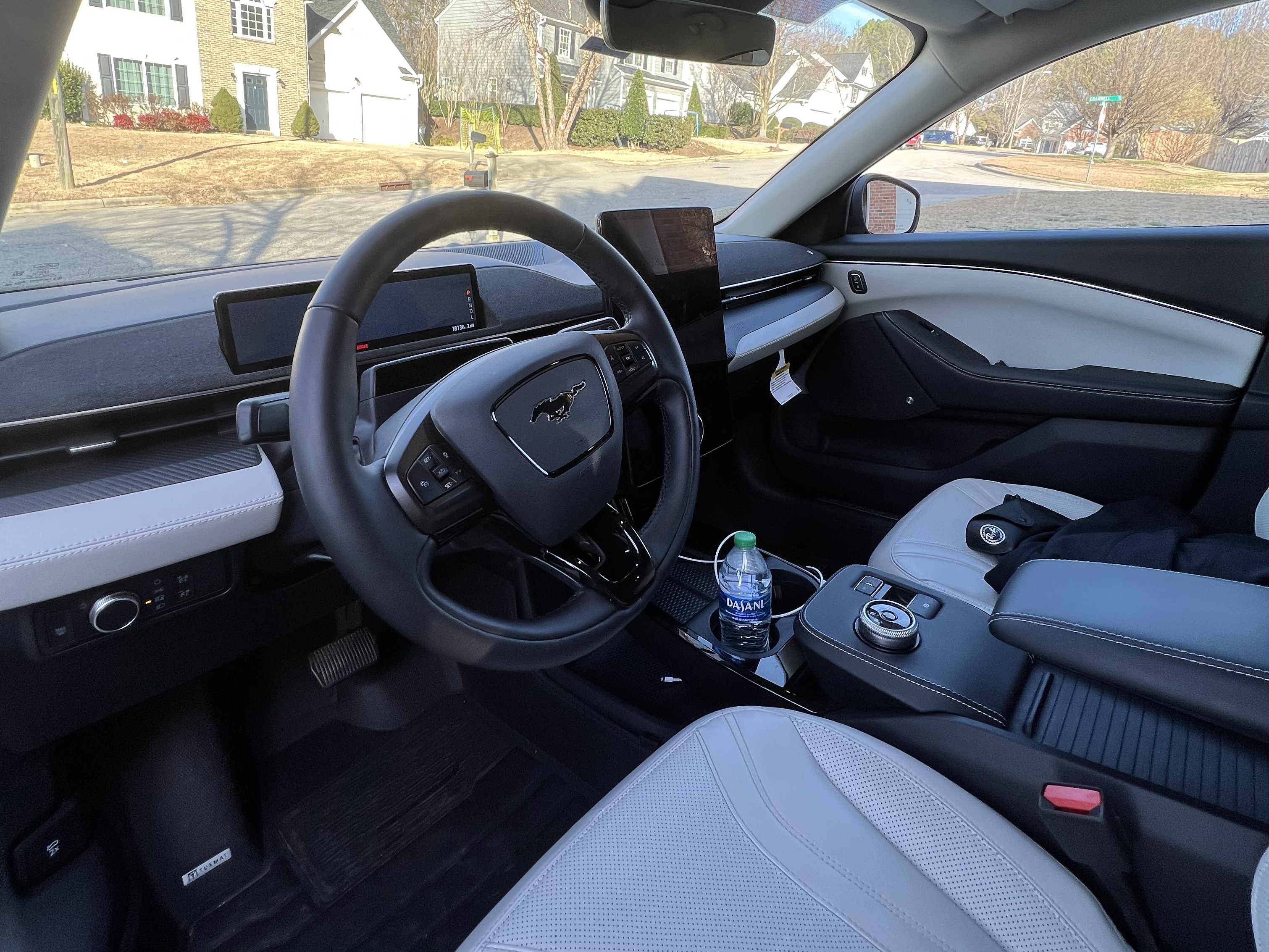 Additionally, there aren’t any Ford badges anywhere on the Mach-E. The front end, back end, wheels, steering wheel, and kickplates all feature Mustang logos. They don’t want you to know it’s a Ford, or even emphasize it’s an electric Mach-E, but they certainly want you to know it’s a Mustang! Take from that what you will.