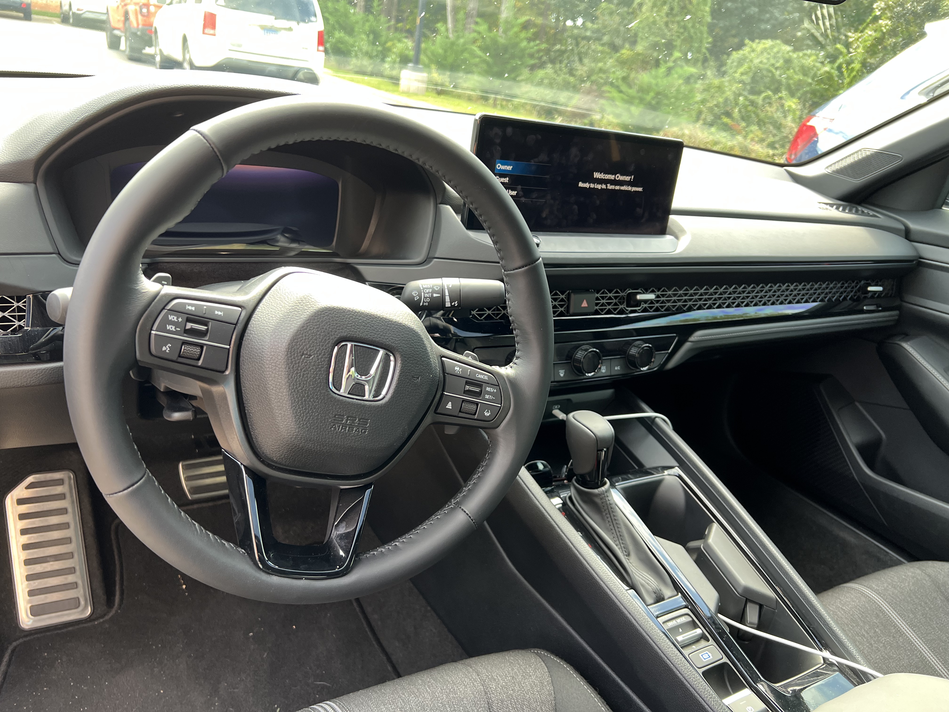 After putting around 500 miles on the Accord, I’m impressed by its well-rounded driving abilities. On the highway, the suspension is soft and the ride is controlled. The cabin is fairly quiet; tire noise is certainly pronounced but not overwhelming. Around town, the hybrid system transitions seamlessly and quietly — you’d really never know there was a difference if you couldn’t occasionally hear the engine kicking on.