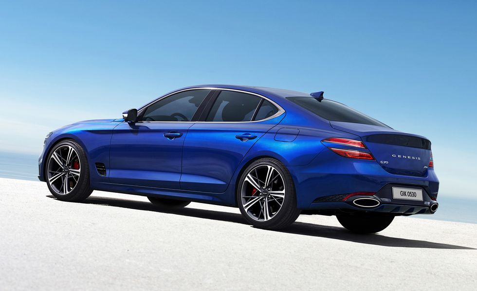 Previously available with a 2.0-liter turbocharged four-cylinder and a 3.3-liter turbocharged V6, the G70 drops its base engine in favor of a 2.5-liter turbo-four as found in the larger G80 and Genesis’ SUVs. In this application, the 2.5-liter offers 300 horsepower and 311 pound-feet of torque, healthy bumps of 48 hp and 51 lb-ft over the smaller outgoing engine. It still uses an eight-speed ZF automatic and either rear- or all-wheel-drive.