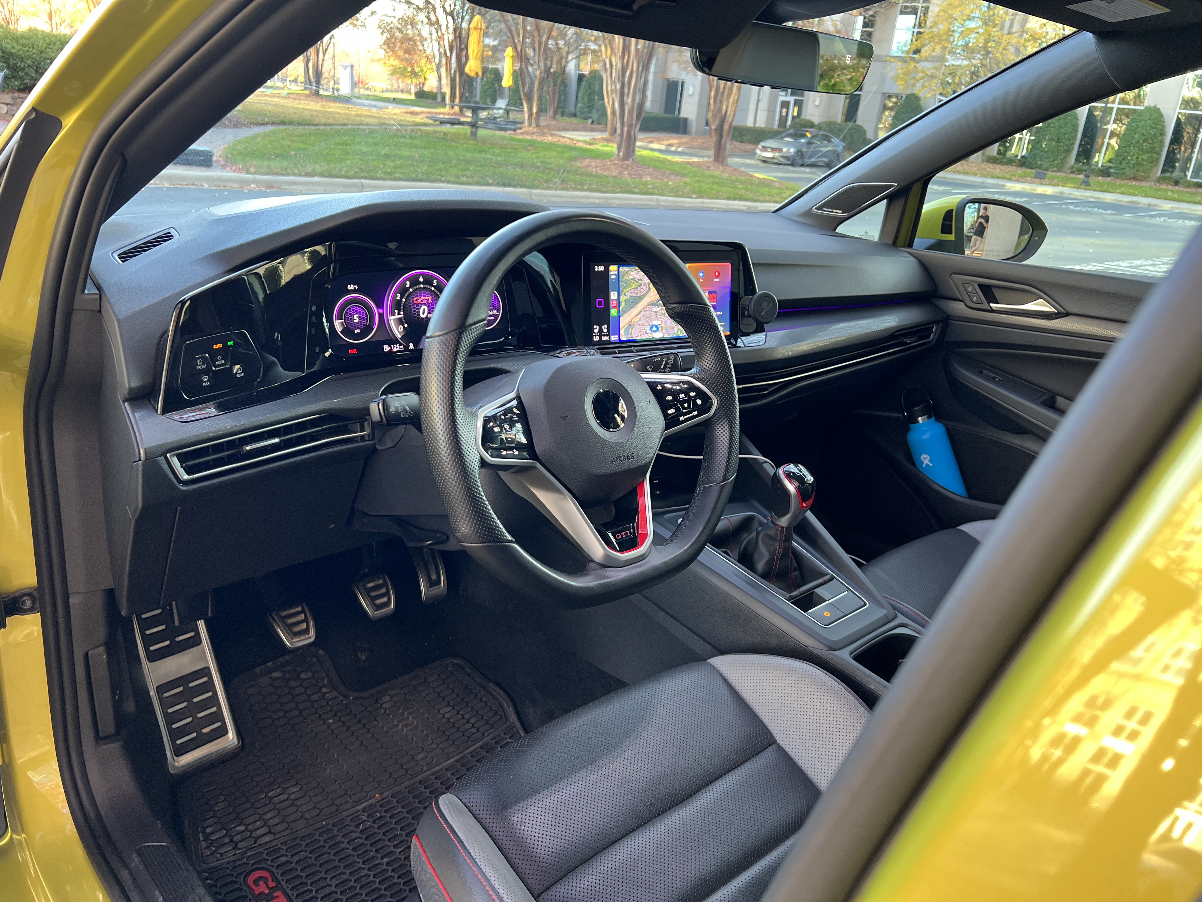 Regardless of screen size, the user interface is ultimately annoying in most ways. The capacitive steering wheel buttons are overall difficult to use — for instance, the difference in press-firmness needed for adjusting cruise control in 1 mph versus 5 mph increments is very difficult to modulate. The infotainment software isn’t the greatest, but wireless Apple CarPlay works well and I personally just use that instead. In the digital gauge cluster, layouts and customization are excellent as in most VW products; whereas the heads-up display is somewhat lacking. Additionally, if you don’t use the built-in navigation system, the entire HUD appears to be off-center, as your speed and cruise control are offset to the left side.