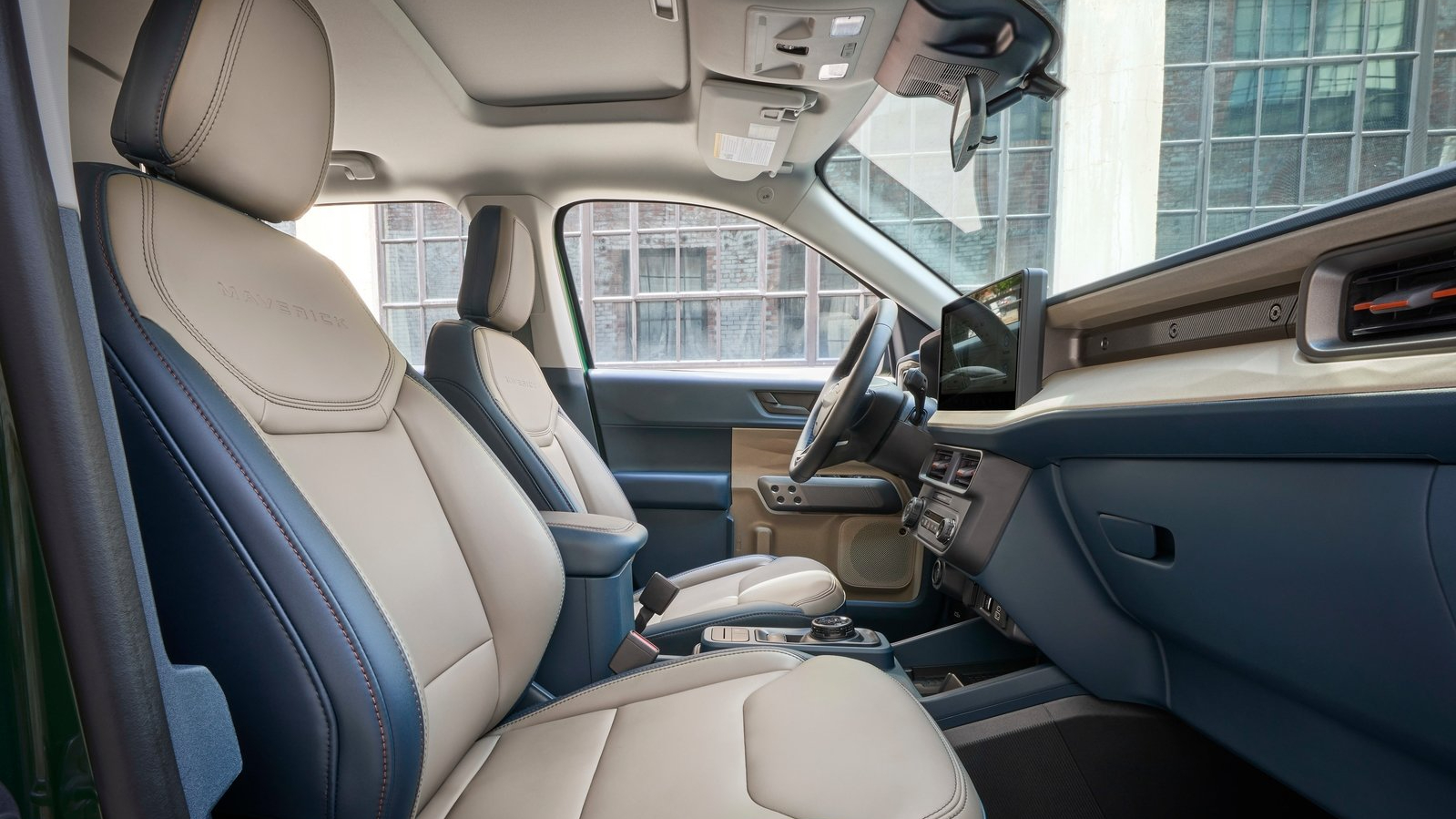Inside, it’s impossible to ignore the new infotainment screen. Gone is the Maverick’s previous eight-inch display (shared with the Bronco Sport) and the weird cubby hole that sat next to the screen, with a 13.2-inch touchscreen taking its place. Annoyingly, it’s so big that the screen remains off-center to the climate controls below. Aside from Sync 4 with wireless Apple CarPlay and Android Auto, tech updates are rounded out with the addition of an optional 360-degree camera and Ford’s Pro Trailer Backup Assist feature.