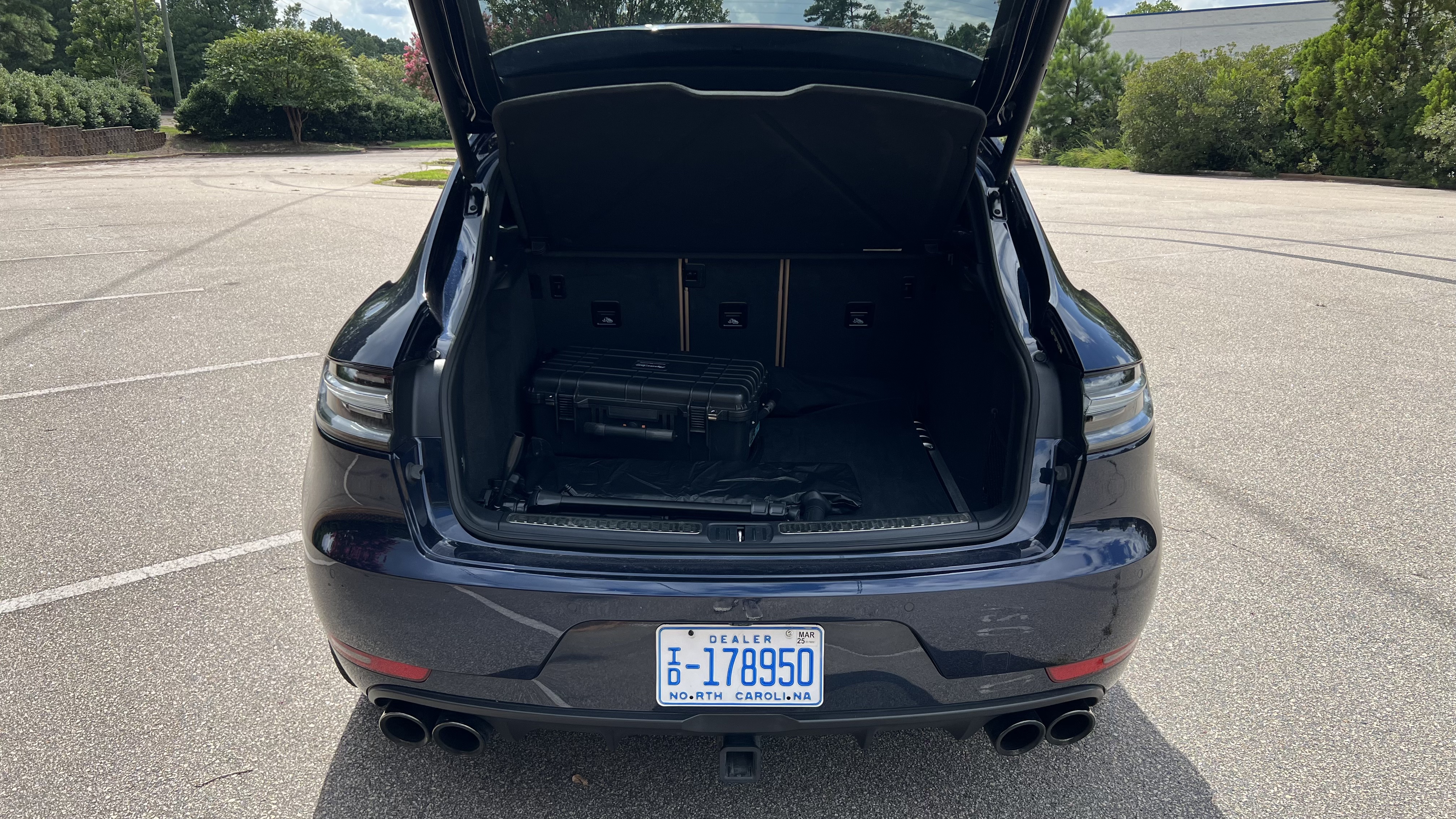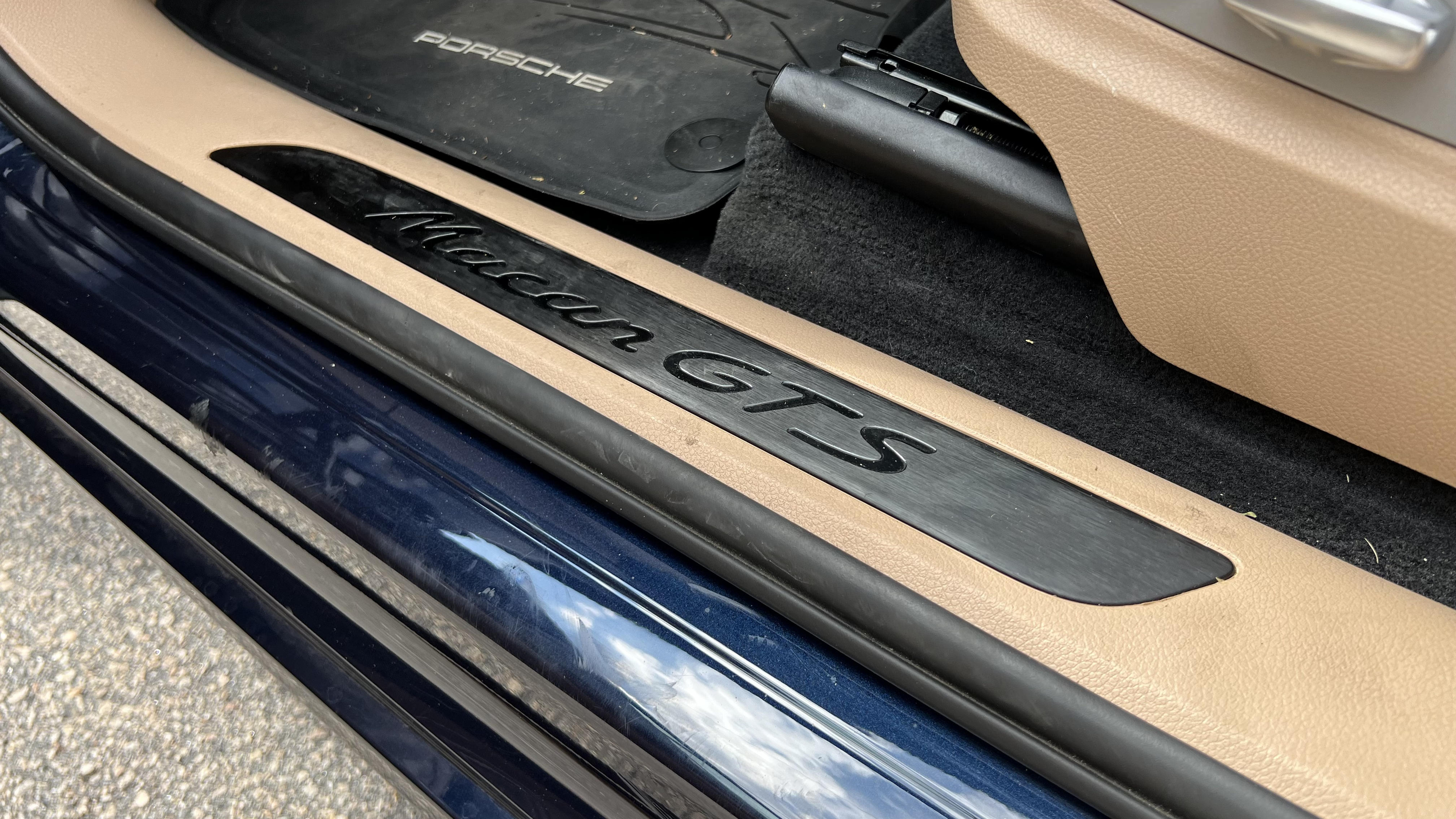 Speaking of subtlety, this particular Macan GTS is a particularly elegant spec. Finished in Night Blue over a Luxor Beige interior, it lacks any of the shouty carbon fiber or big yellow carbon-ceramic brakes. It’s even de-badged at the rear, complimenting the clear taillights. It gets bonus points for the optional trailer hitch, too.