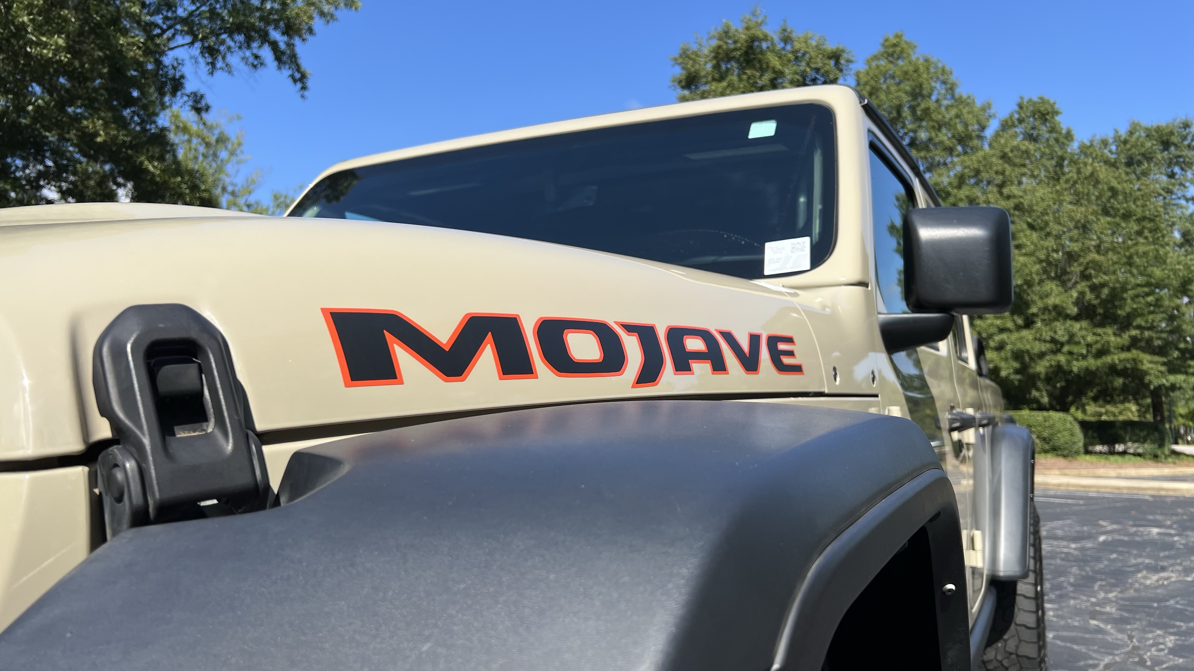 The Mojave trim shares the top spot of the Gladiator lineup with the Rubicon and is billed as the only “Desert-Rated” Jeep, in contrast to the typical “Trail-Rated” badge. Standard equipment includes 33-inch Falken Wildpeak A/T tires on unique black 17-inch wheels, Dana 44 Wide axles, and FOX 2.5-inch internal bypass shocks with external reservoirs (providing a one-inch increase in ride height over other models). Exclusive to the Mojave is the ability to lock the rear axles at high speeds when in 4H mode, and of course plenty of orange accents inside and out. My tester is also finished in the limited-edition “Gobi” paint color, also known as tan.