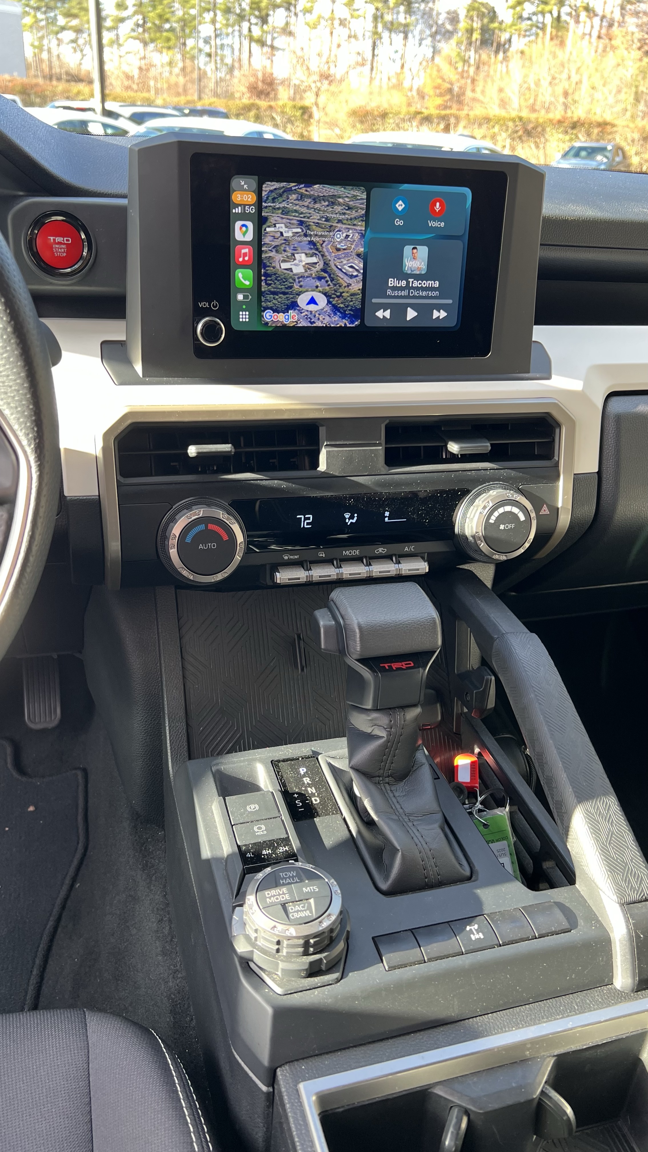 Inside, the Tacoma remains a little light on technology — at least on the mid-level TRD Off-Road, judging by the amount of blank buttons. And the features it does have are a very mixed bag; Toyota’s standard safety suite is on board, there’s a digital gauge cluster and wireless Apple CarPlay, but the manual cloth seats aren’t heated and there’s no sliding rear window as standard. Not to worry, those features and more are included in the $4,840 TRD Off-Road Upgrade Package or the $9,000 TRD Off-Road Premium Package, either of which is a big ask on top of the already near-$45,000 MSRP. Strangely though, the aforementioned manual seats do have power-adjustable lumbar support, so that’s something.