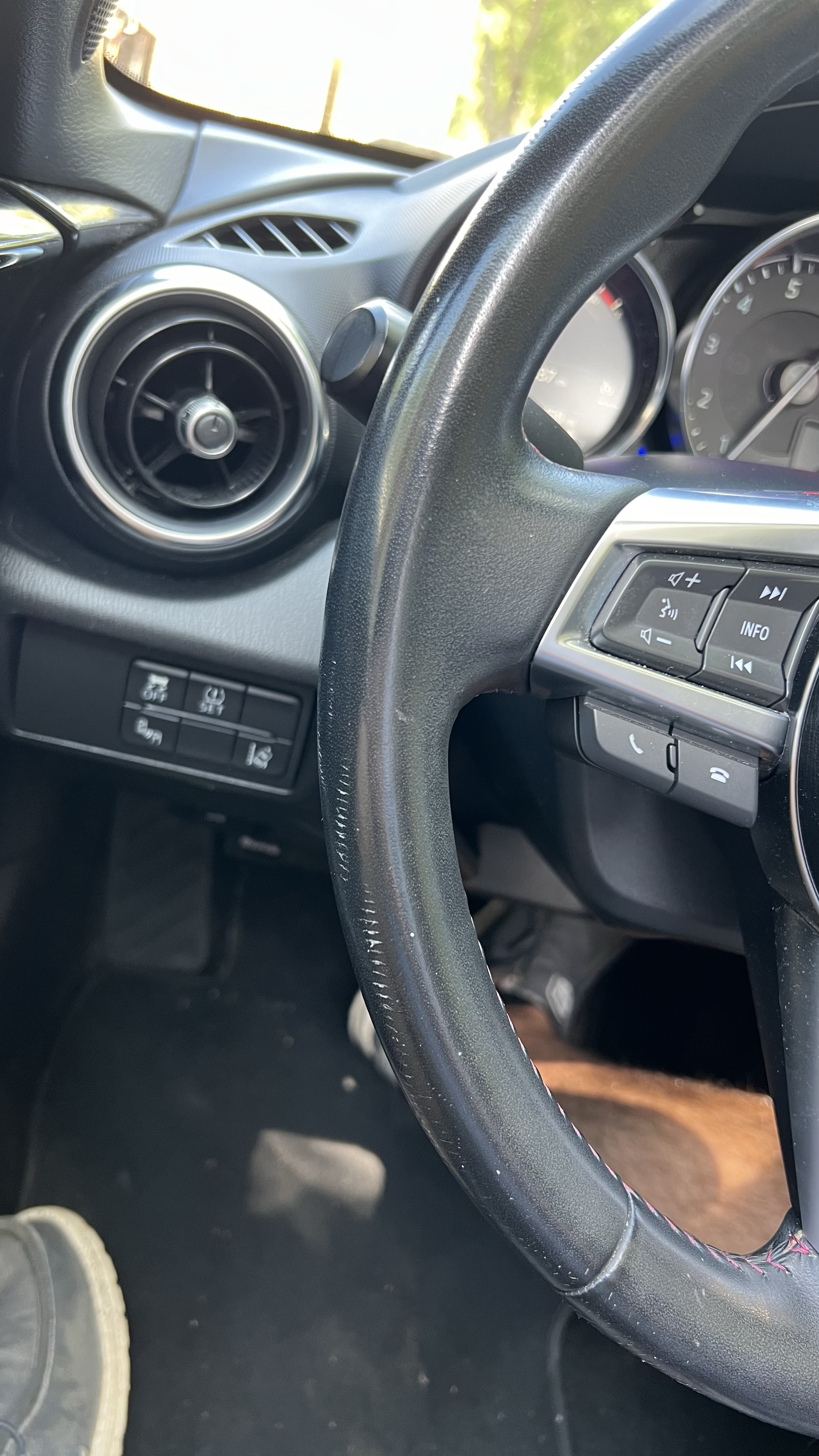 During some of this time, the Miata was actually out with another guest. And as luck would have it, that trip ended up turning into my second ever damage claim! This time, the car returned with extremely poor communication from the guest and small portions of the leather steering wheel torn up. I can only guess what would’ve caused this damage, and I suspect maybe a ring or something else worn on the driver’s hands, but I’m not entirely sure. The guest left a pamphlet in the car for the Maryland Renaissance Festival, so maybe they were wearing some sort of costume, jewelry, or something else related that could have scratched it up. Again, I can only theorize.